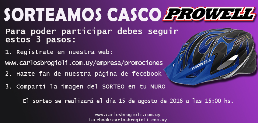 Premio: Un casco de bicicleta marca PROWELL (foto meramente ilustrativa, modelo y color según disponibilidad en stock).